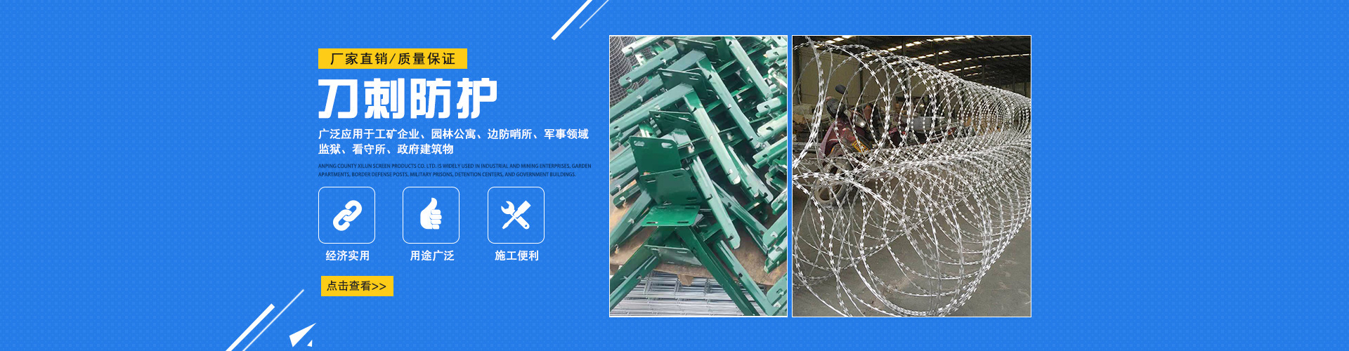 安平初日絲網(wǎng)有限公司是一家專(zhuān)業(yè)的絲網(wǎng)生產(chǎn)銷(xiāo)售廠家,主要產(chǎn)品有刀片刺繩、刺絲滾籠、刺繩支架等產(chǎn)品,公司為客戶(hù)提供產(chǎn)品知識(shí)和新鮮是市場(chǎng)行情,回答用戶(hù)產(chǎn)品相關(guān)問(wèn)題,幫助用戶(hù)更好的選購(gòu)產(chǎn)品。